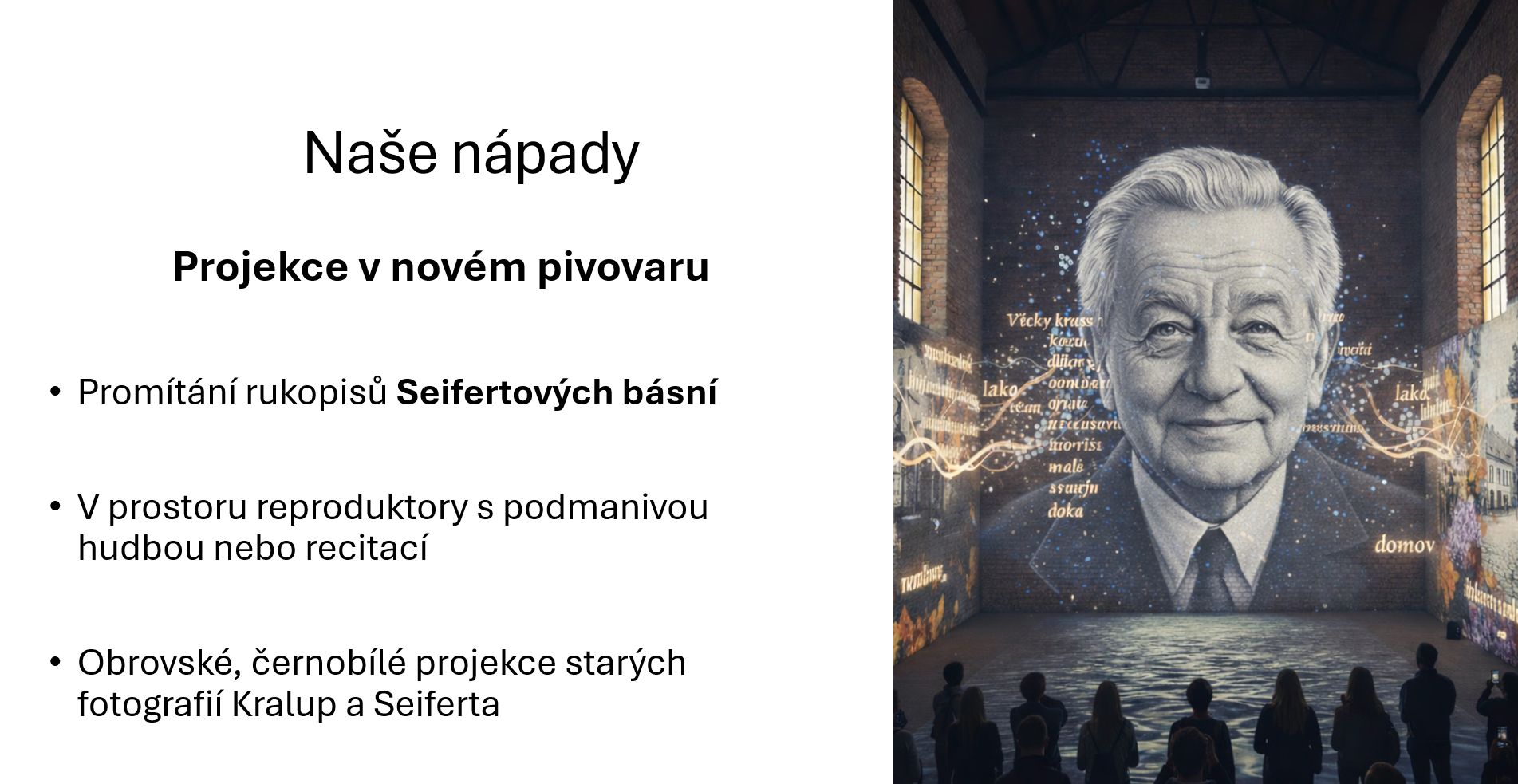 Pozornost se soustředila také na festival Seifertovy Kralupy, který jako jediná pravidelná akce připomíná jediného českého nositele Nobelovy ceny za literaturu. Přestože jde o zavedený festival s tradicí, mezi obyvateli města zatím nerezonuje tak silně, jak by mohl. Studenti proto navrhli jeho výraznější otevření veřejnému prostoru a větší důraz na hosty z komunity literárních influencerů, kteří by mohli oslovit nové publikum.