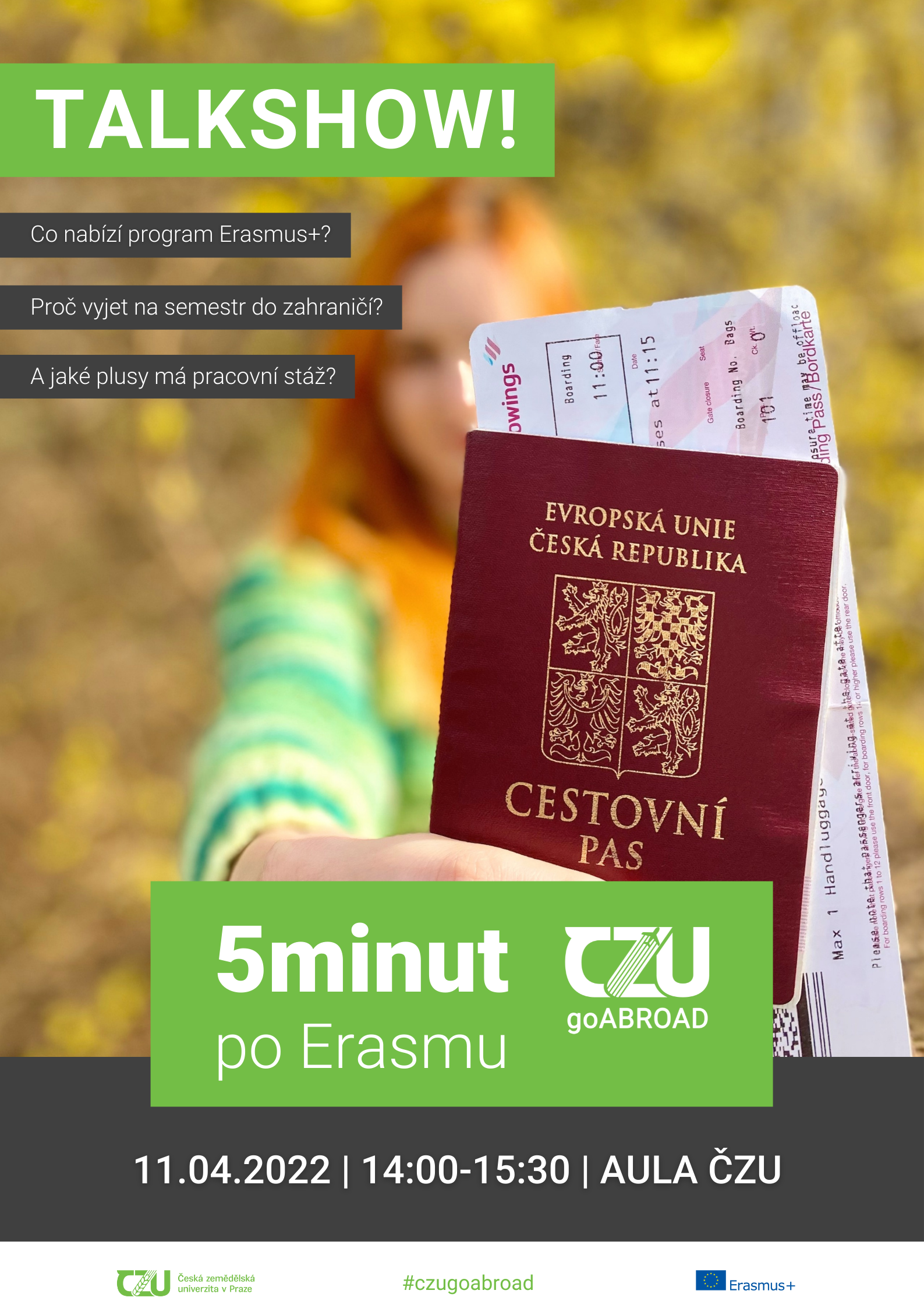 Tak přijďte v pondělí 11. dubna od 14:00 do Auly ČZU na TALKSHOW! 5minut po Erasmu!