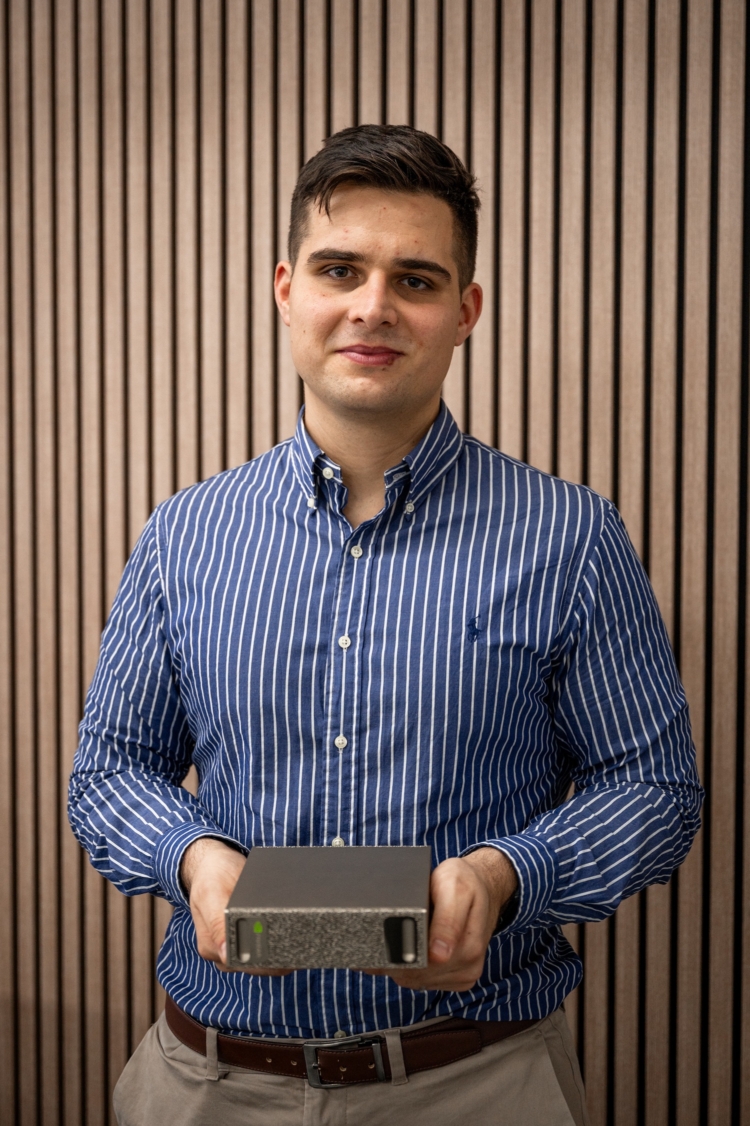 The handing over took place in the presence of the Vice-Dean for Science and Research, doc. Jan Tyrych, and the First Vice-Dean, doc. Martin Pelikán, and was symbolically supported by the handing over of the equipment to talented FEM students: student Ing. Vojtěch Pivoňka, 1st year DSP, who received the Josef, Marie and Zdeňka Hlávka Foundation Award this year, and successful DSP graduate dr. Adéla Hamplová, winner of the Prof. Stoklas Award 2025. The equipment was handed over on behalf of M Computers by its representative, Mr. Milan Hradil.