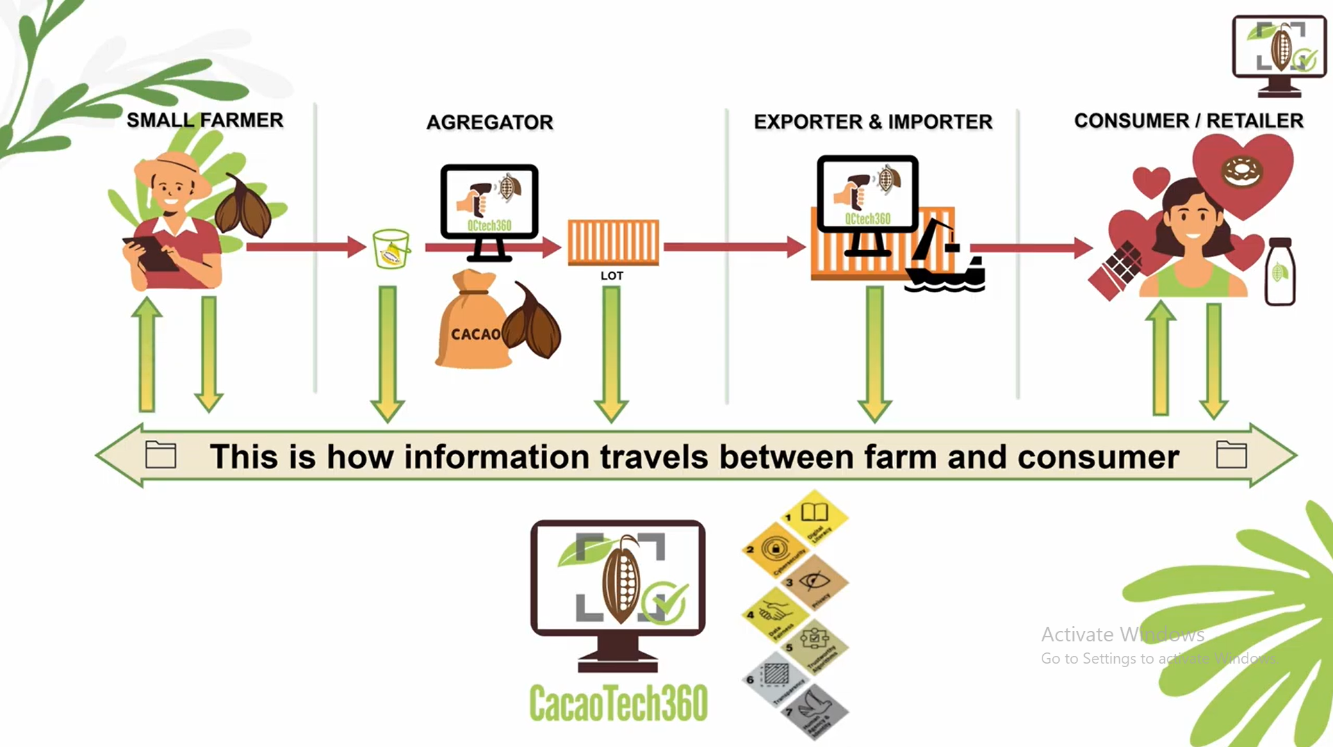 In many producing countries, cocoa is still traded through informal networks without contracts, records, or price transparency, which increases the risk of trust abuse, deepens vulnerability, and threatens smallholder farmers (4). At the same time, pressure from buyers to ensure quality is increasing. In contrast, systems for quality monitoring and information traceability at the early stages of the value chain are almost non-existent. As a result, farmers often receive only a fraction of the final product value, considering that 42% of small-scale producers live at or below the poverty line (6; 7). The situation could be improved through timely quality control and the sharing of key information. Another weakness of the chain is the low level of fruit utilisation: up to 80% of the cocoa pod, including the pulp that constitutes around 10% of the fruit, ends up as waste, placing a burden on the environment and causing further losses of potential income (5). This waste, however, can be valorised, for example, into cocoa juice, charcoal, compost, or construction materials. These shortcomings in the value chain contribute to social risks, including poverty, child labour, deforestation, and environmental degradation, which affect millions of farmers (8 ; 9 ).